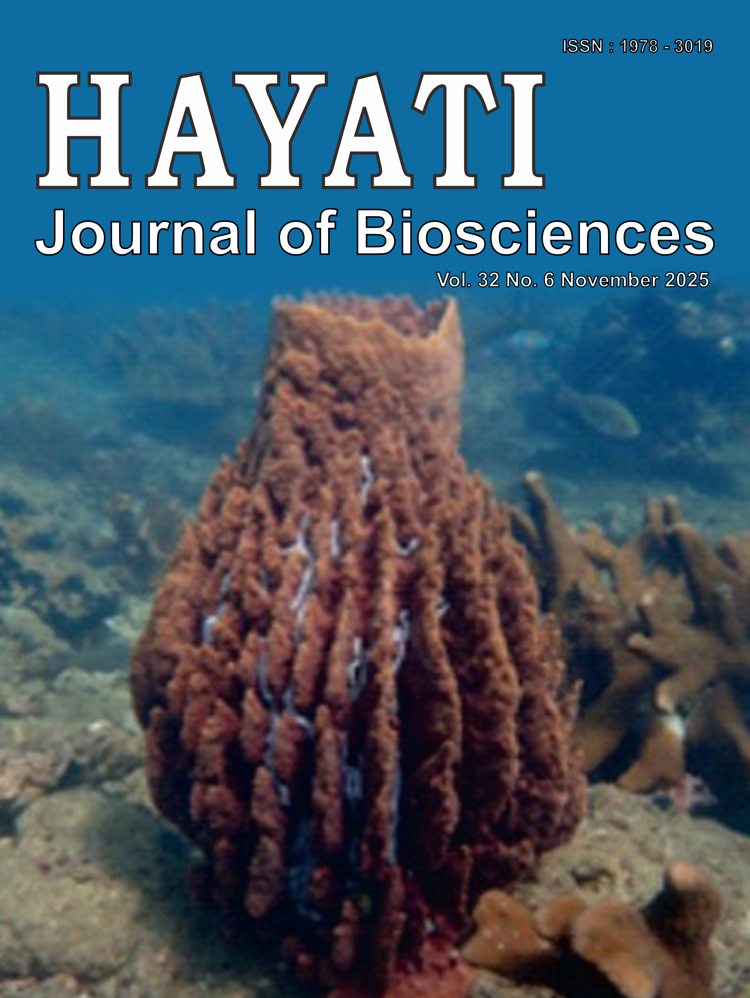 HAYATI J Biosci is an open access journal and the article's license is CC-BY-NC. This license lets others distribute, remix, tweak, and build upon author's work, as long as they credit the original creation. Authors retain copyright and grant the journal/publisher non exclusive publishing rights with the work simultaneously licensed under a https://creativecommons.org/