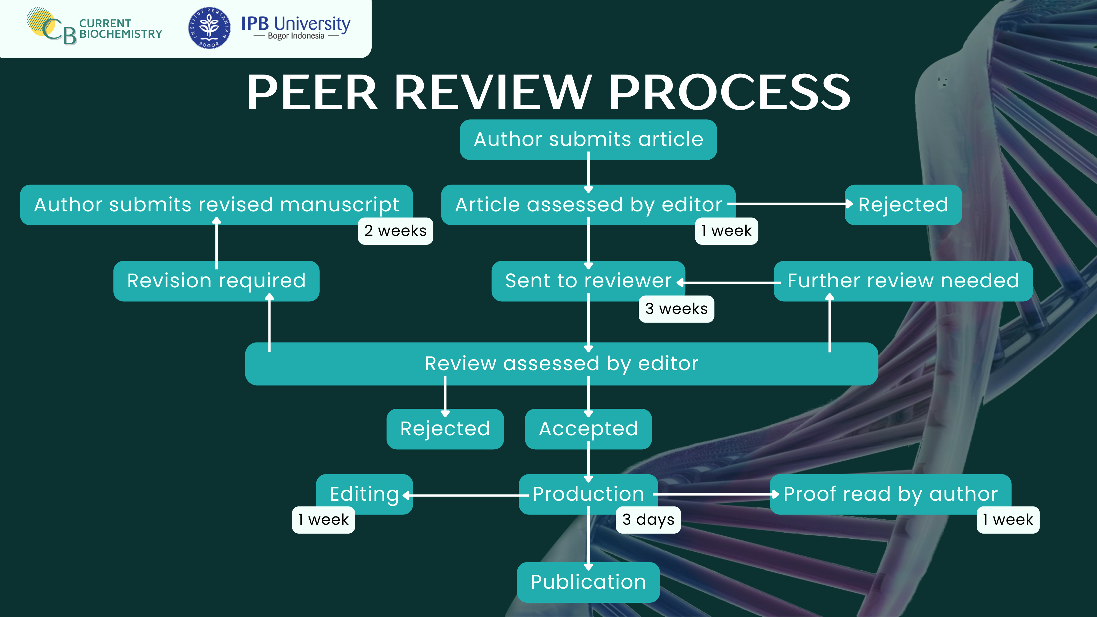 Authors who prepare their manuscripts in Bahasa Indonesia may submit their work for publication by utilizing the journal’s translation service, subject to a translation fee of IDR 100,000 per article. Requests for translation services must be formally submitted via email to current.biochemistry@apps.ipb.ac.id prior to manuscript submission. Plagiarism screening using Turnitin must be conducted by the authors before submission. If authors request plagiarism checking to be carried out by Current Biochemistry, an additional fee of IDR 50,000 per article will apply, and such requests must also be submitted via the same email address.