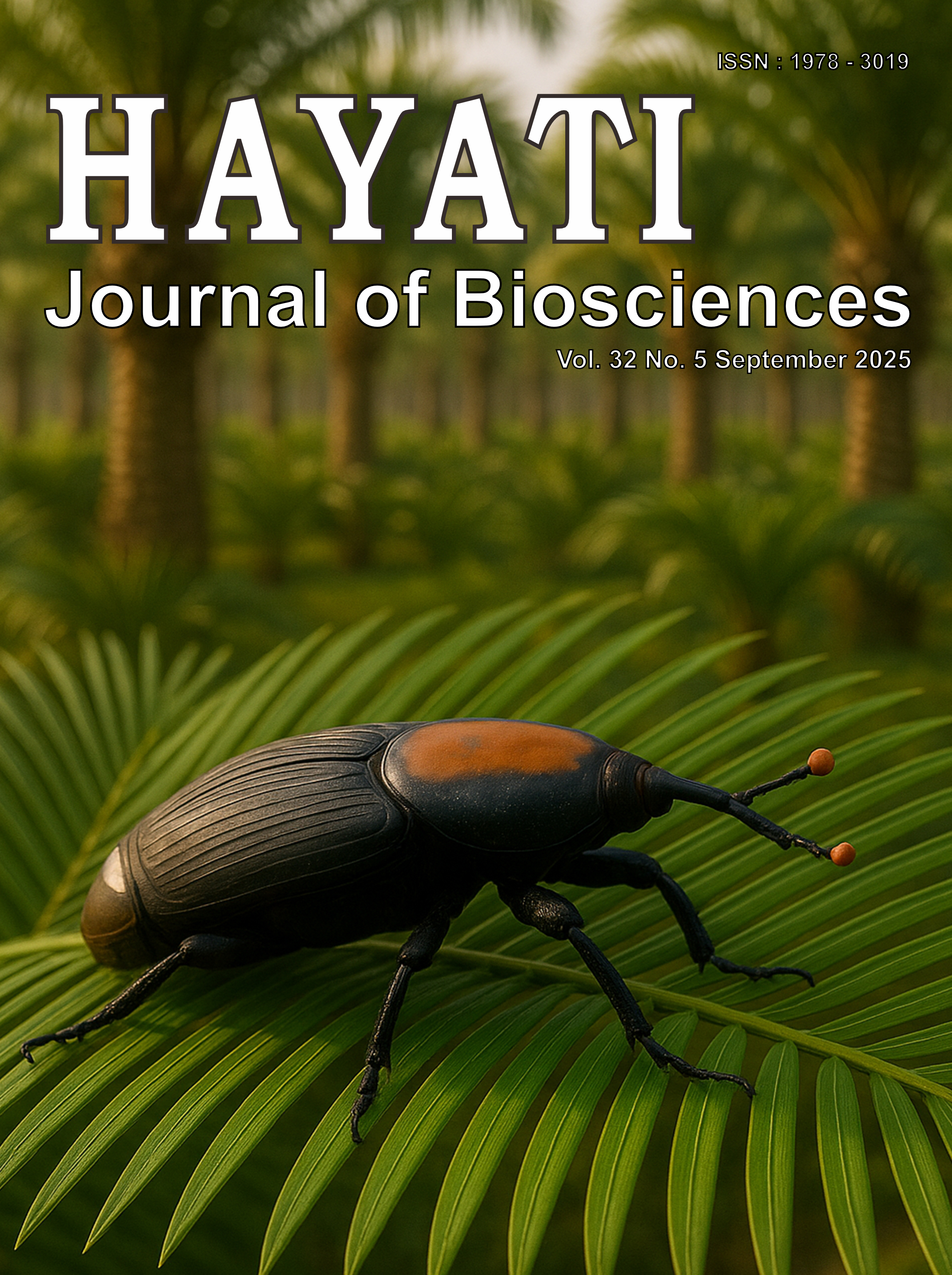 HAYATI J Biosci is an open access journal and the article's license is CC-BY-NC. This license lets others distribute, remix, tweak, and build upon author's work, as long as they credit the original creation. Authors retain copyright and grant the journal/publisher non exclusive publishing rights with the work simultaneously licensed under a https://creativecommons.org/