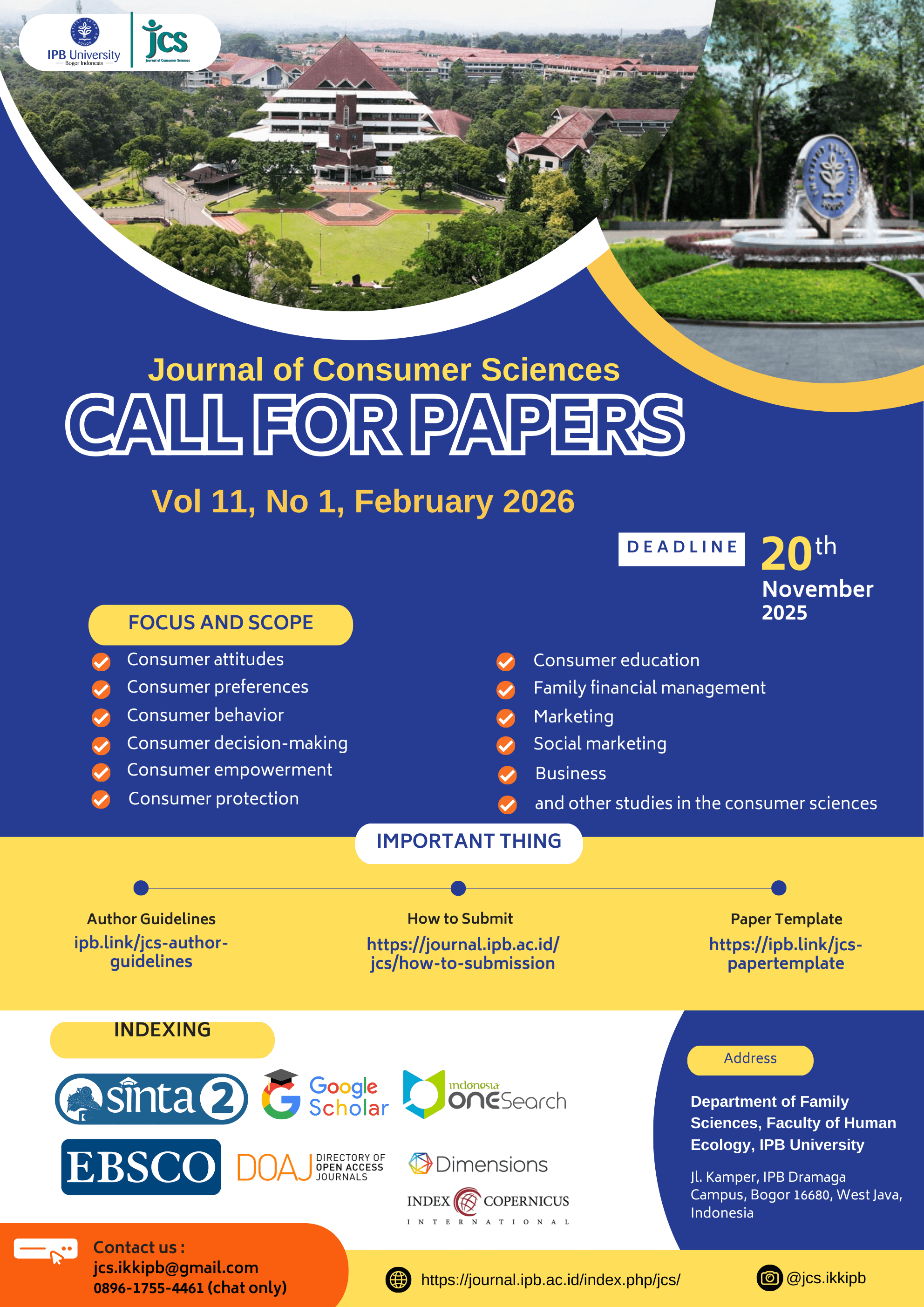 π’ Call for Papers β Journal of Consumer Sciences (JCS)