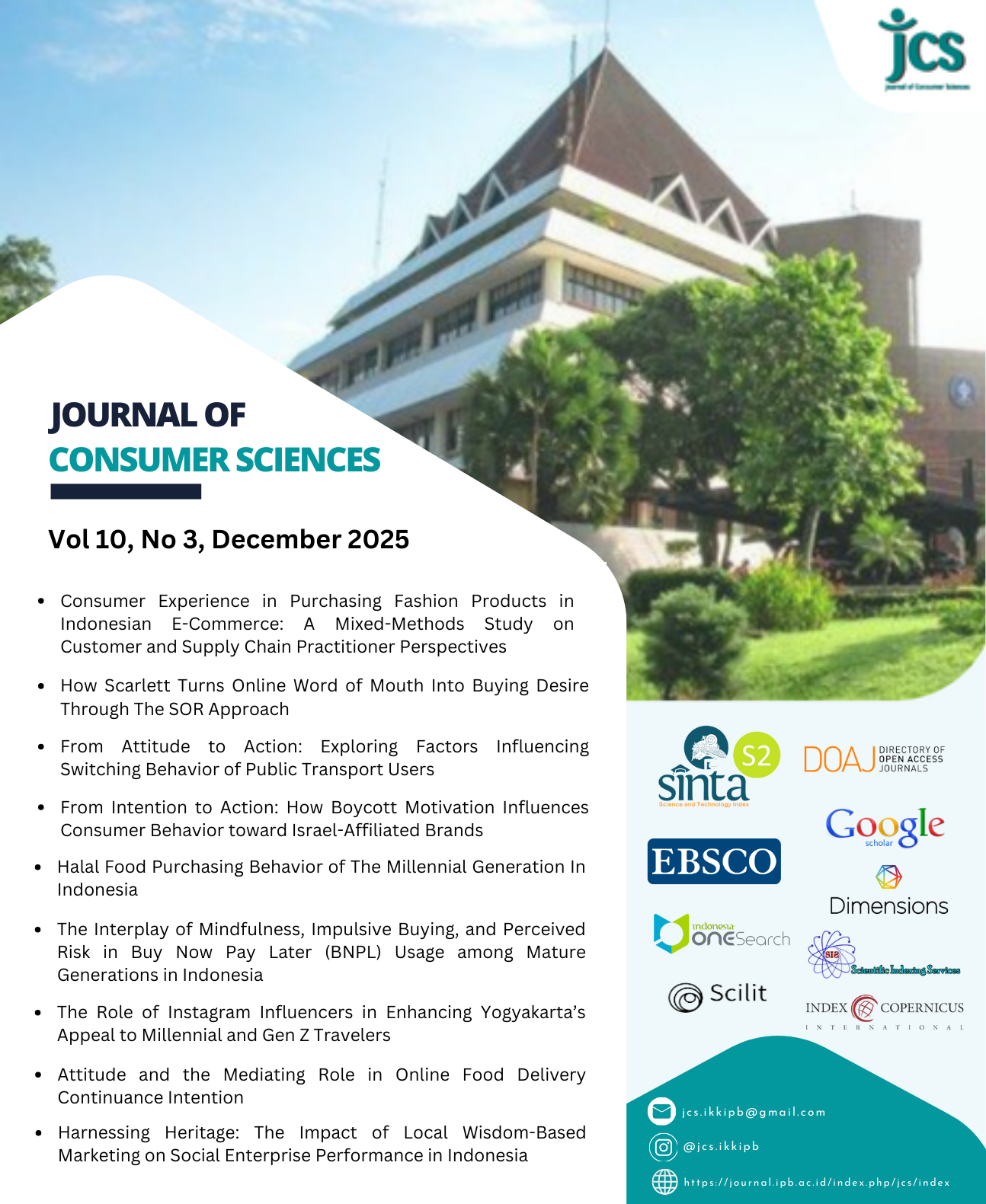 Elverda, E., Nahdah, T. A., & Hamali, S. (2025). Analysis of factors affecting consumer decision-making in choosing online food delivery in Indonesia. Journal of Consumer Sciences, 10(1), 118-144. https://doi.org/10.29244/jcs.10.1.118-144.