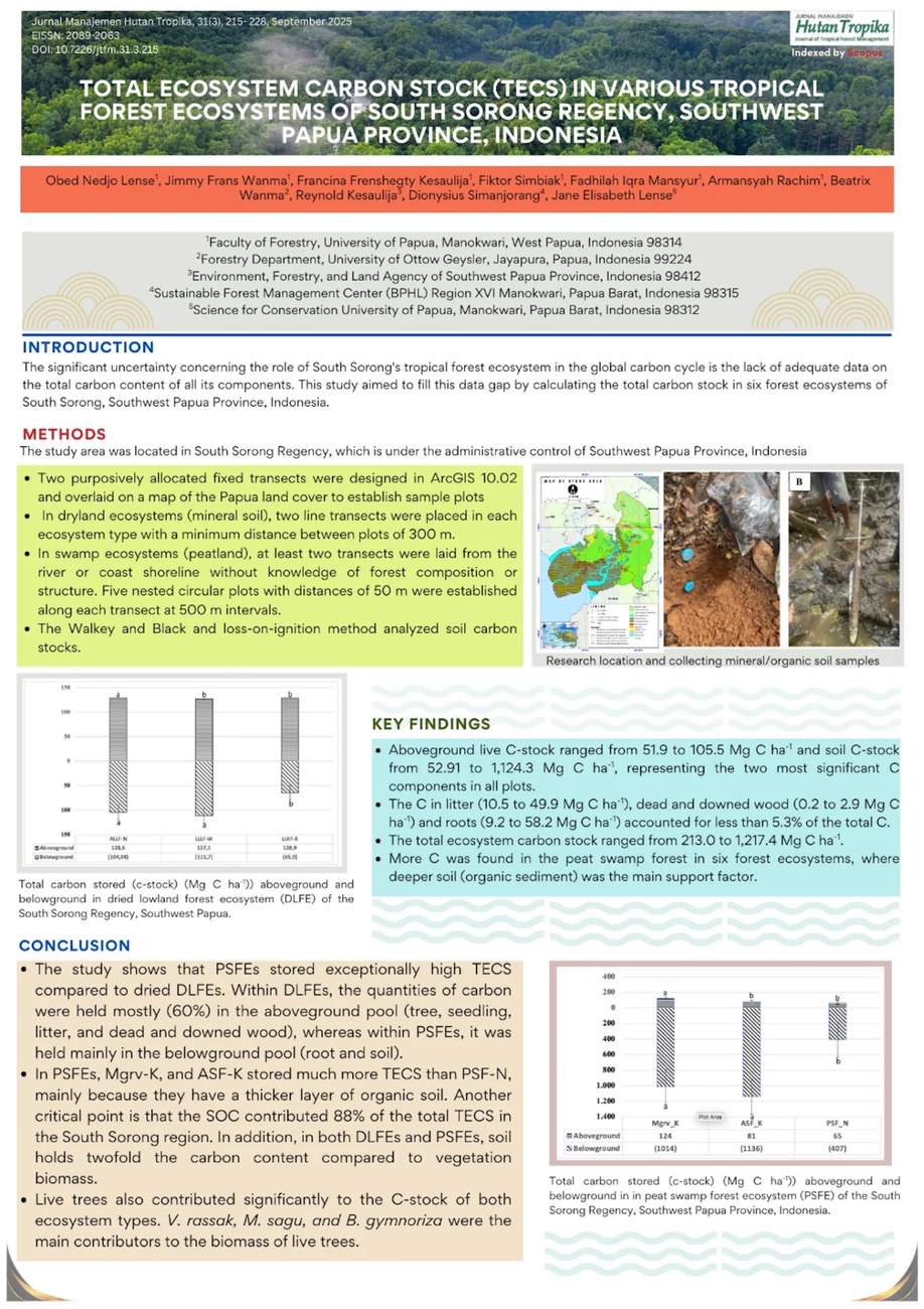 Total Ecosystem Carbon Stock (TECS) in Various Tropical Forest Ecosystems of South Sorong Regency, Southwest Papua Province, Indonesia
