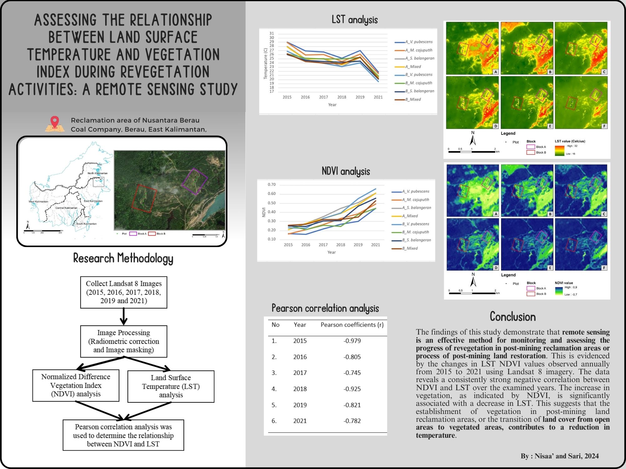 Assessing the Relationship Between Land Surface Temperature and Vegetation Index During Revegetation Activities: A Remote Sensing Study on Berau Regency, East Kalimantan (2015-2021)