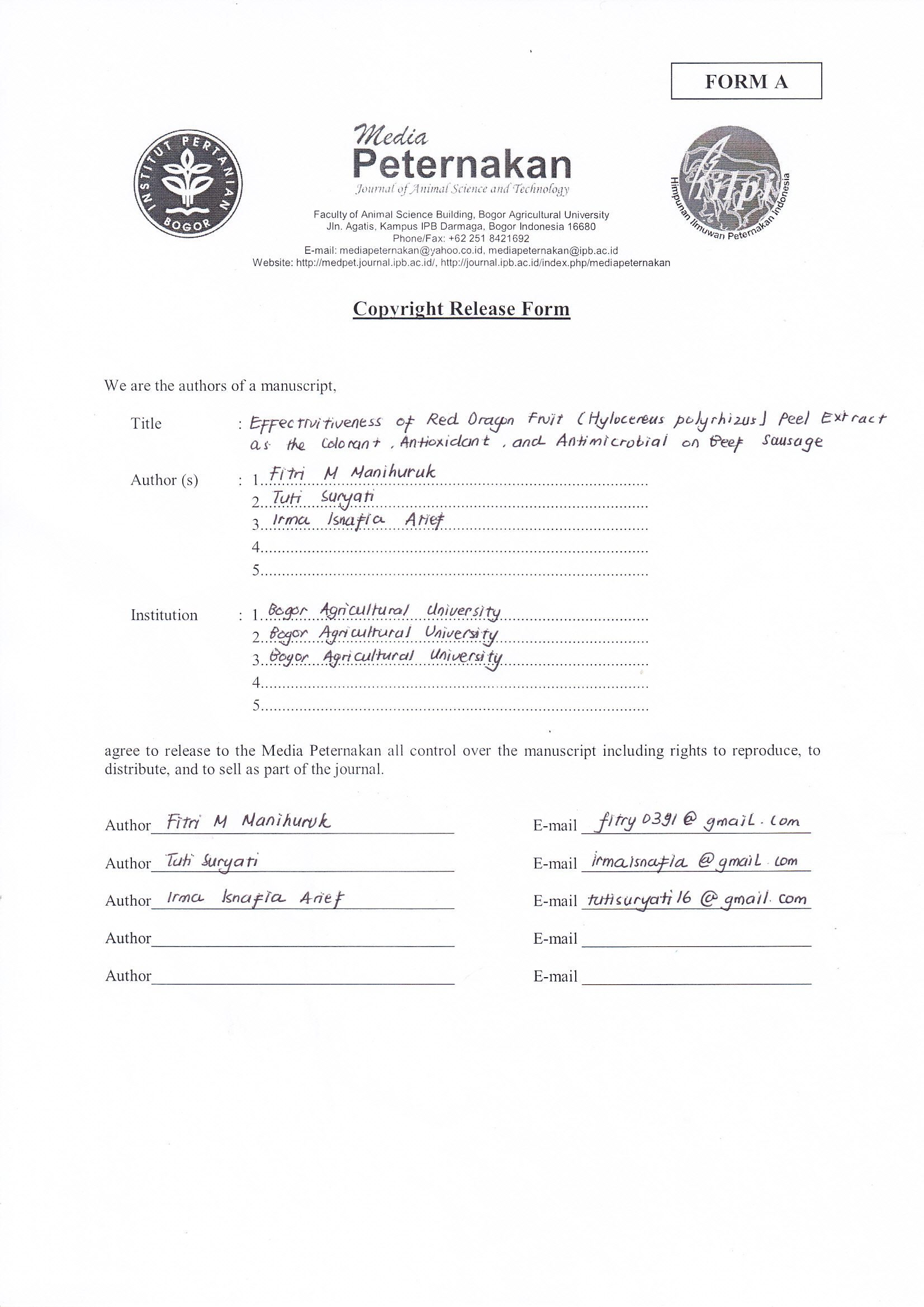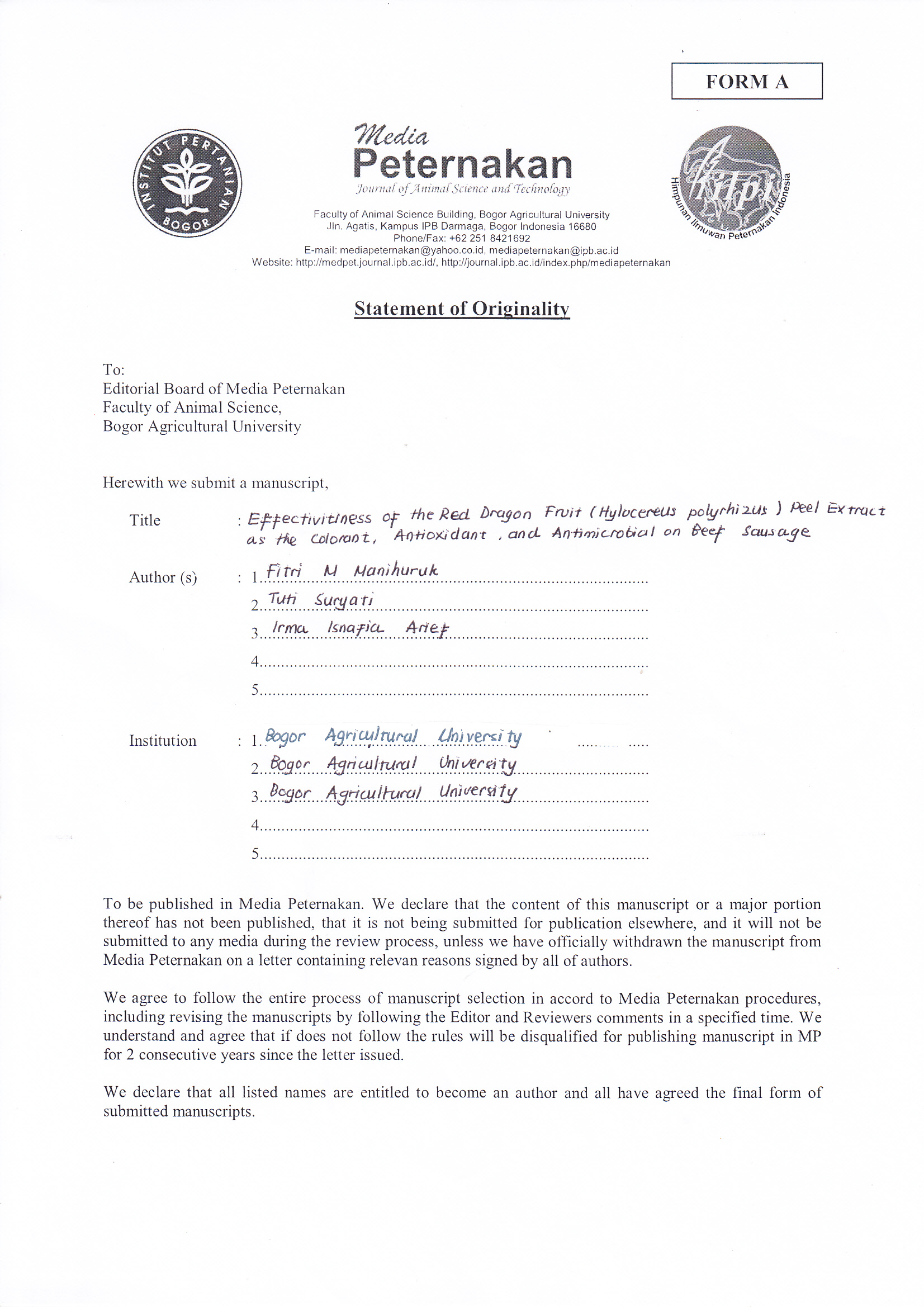 Arief, I. I., T. Suryati, D. Afiyah, & D. Wardhani. 2014. Physicochemical and organoleptic of beef sausages with teak leaf extract (Tectona grandis) addition as preservative and natural dye. Int. Food Res. J. 21: 2033-2042.