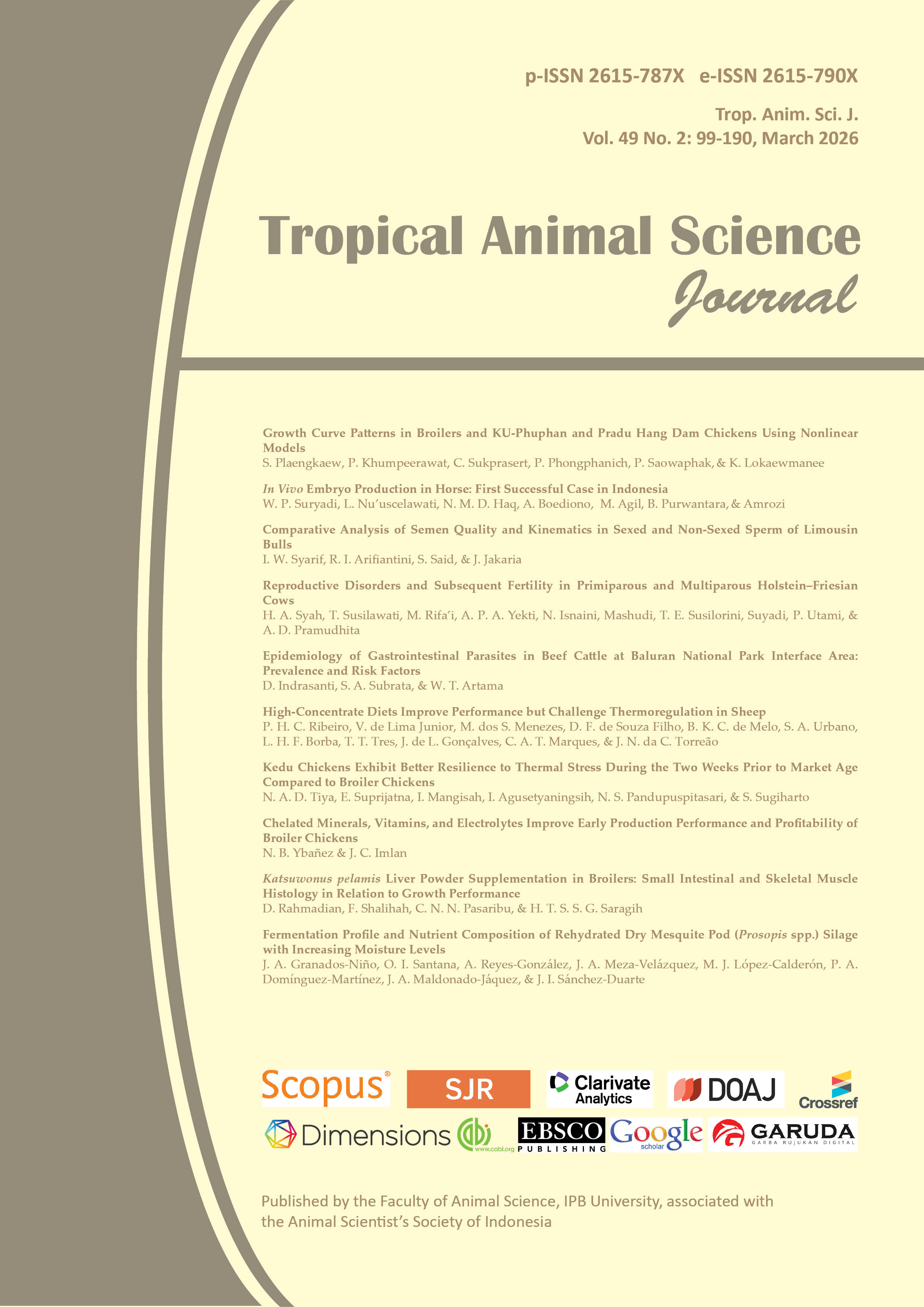 - We declare that the content of this manuscript or a major portion thereof has not been published, that it is not being submitted for publication elsewhere. It will not be submitted to any media during the review process unless we have officially withdrawn the manuscript from Tropical Animal Science Journal on a letter containing relevant reasons signed by all authors.